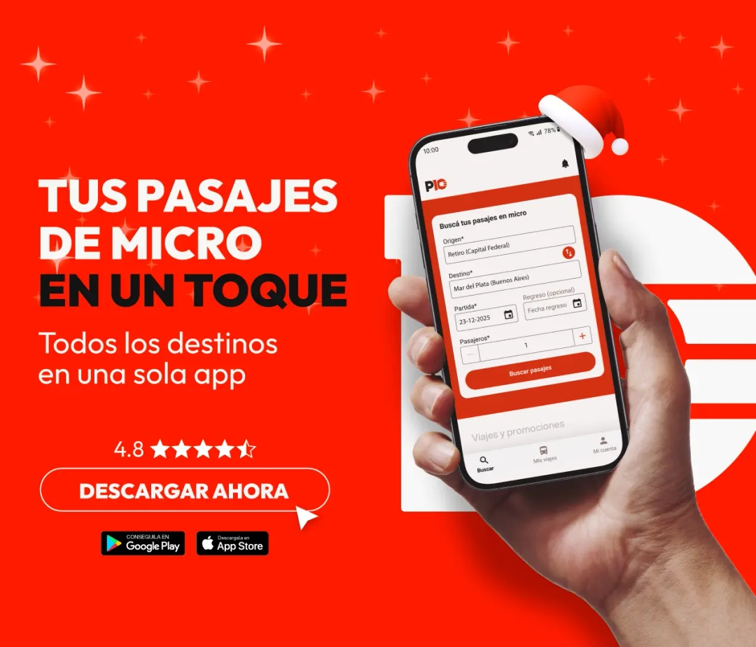 Ya sea para una escapada corta o unas vacaciones Argentina tiene miles de rincones para descubrir en micro, desde grandes ciudades hasta playas y destinos turísticos únicos. Si estás pensando en tu próxima escapada, visitá nuestra sección de destinos destacados y planificá tu viaje con anticipación para aprovechar los distintos rincones del país. Al esté podés encontrar pasajes a Mar del Plata, el balneario más visitado del país, ideal para vacaciones en la costa. Conseguí también pasajes a Córdoba, una ciudad con sierras, historia y cultura. Si preferís recorrer el litoral, podés sacar pasajes a Rosario, con su costanera y propuestas gastronómicas. Para viajes al oeste argentino, tenemos pasajes a Mendoza, famosa por sus bodegas y paisajes cordilleranos. Si querés conocer el sur argentino y sus paisajes patagónicos, también podés sacar pasajes a Calafate, puerta de entrada al imponente glaciar Perito Moreno. Y si te tienta el norte argentino con su cultura andina, paisajes únicos y pueblos históricos, no te pierdas de sacar pasajes a San Salvador de Jujuy, la ciudad ideal para empezar tu recorrido por la Quebrada de Humahuaca y el Cerro Siete Colores.